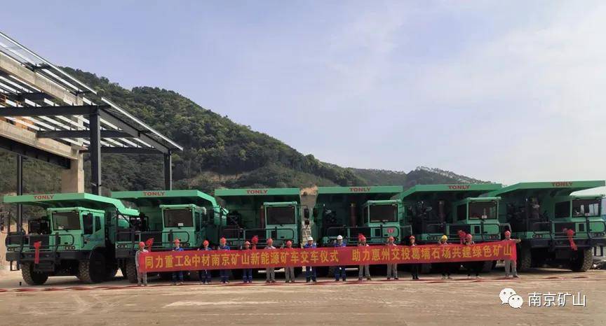 2023年3月14日,6台同力重工TLE105纯电动非公路宽体自卸车交付南京矿山龙门分公司,助力惠州交投葛埔石场绿色矿山建设。