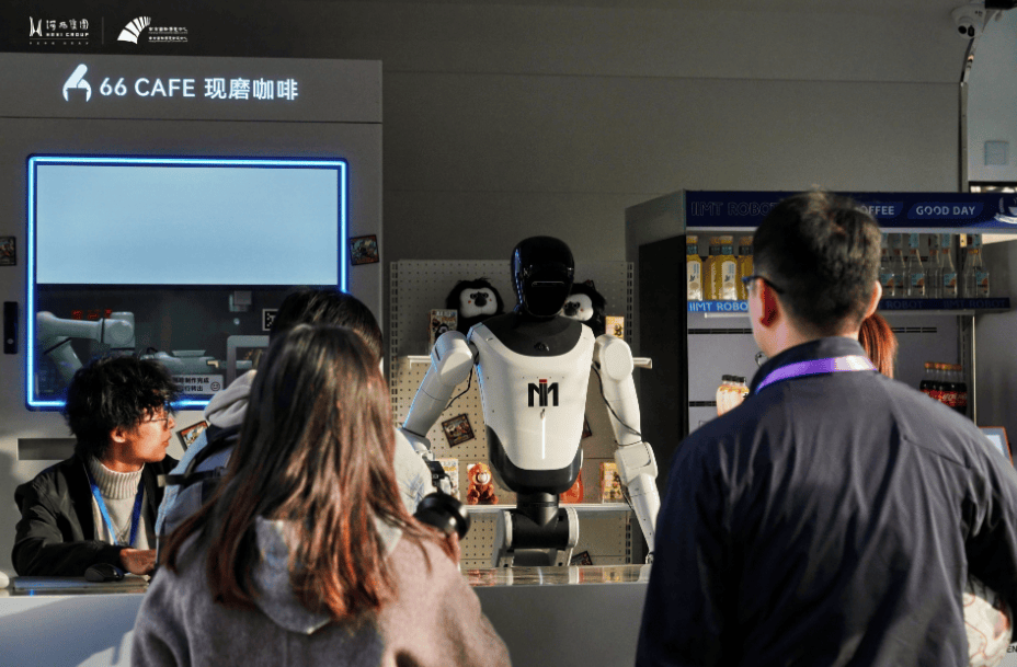 “请给我来杯拿铁。”记者下单支付后,“智能店员”马上接单,身后的智能咖啡机器人也开始忙碌起来,几分钟就将一杯热咖啡准备就绪,实现了从接待、点单、支付到取货、交付的全流程自助服务。