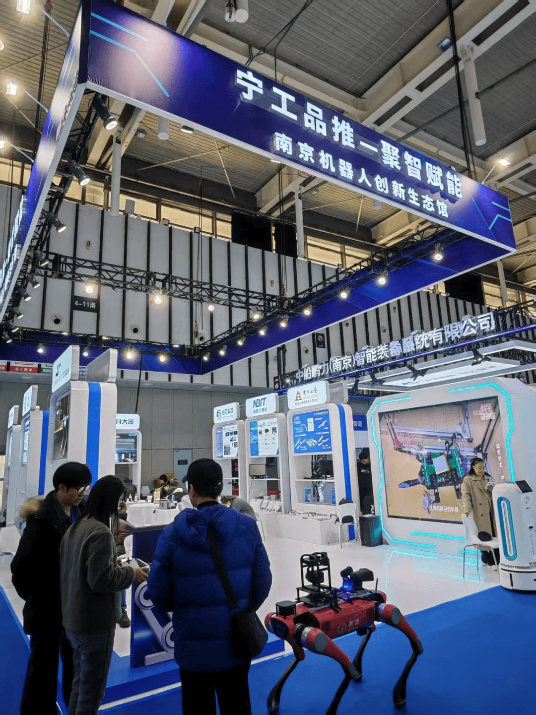 在机器人展馆中,记者注意到南京市机器人产业攻坚办特别设置的“宁工品推—聚智赋能”南京机器人创新生态馆,汇集了南京工艺、南大电子、霞智科技、新工数科等13家南京本土机器人企业,重点展示最新科研成果和新款机器人产品。